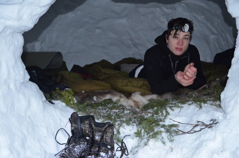 - 3 nachten in een vakantiehuisje en overnachtingen in een zelfgebouwd shelter.